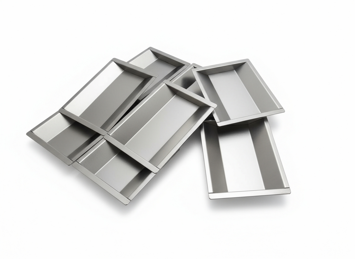 Bandeja pasa dinero en acero inoxidable. Medidas: 300 × 200 × 30 mm. Ideal para ventanillas y puestos de atención.