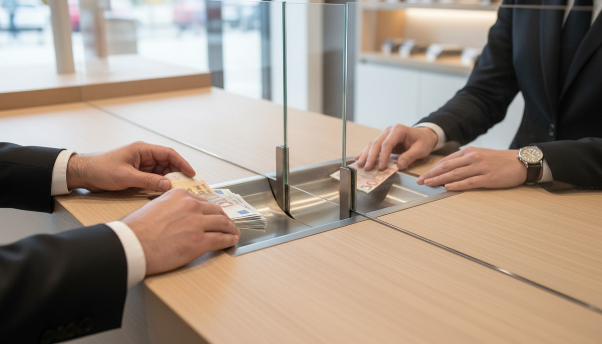 Diseño: De baja altura para paso rápido de billetes, monedas y tickets.